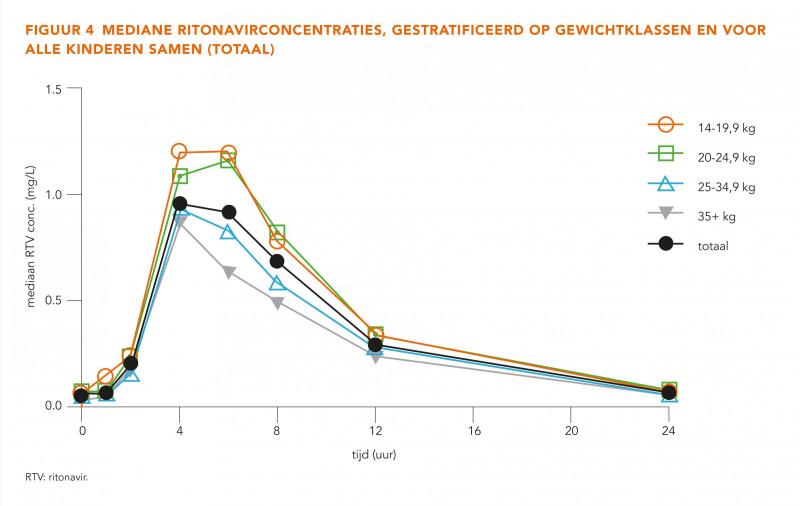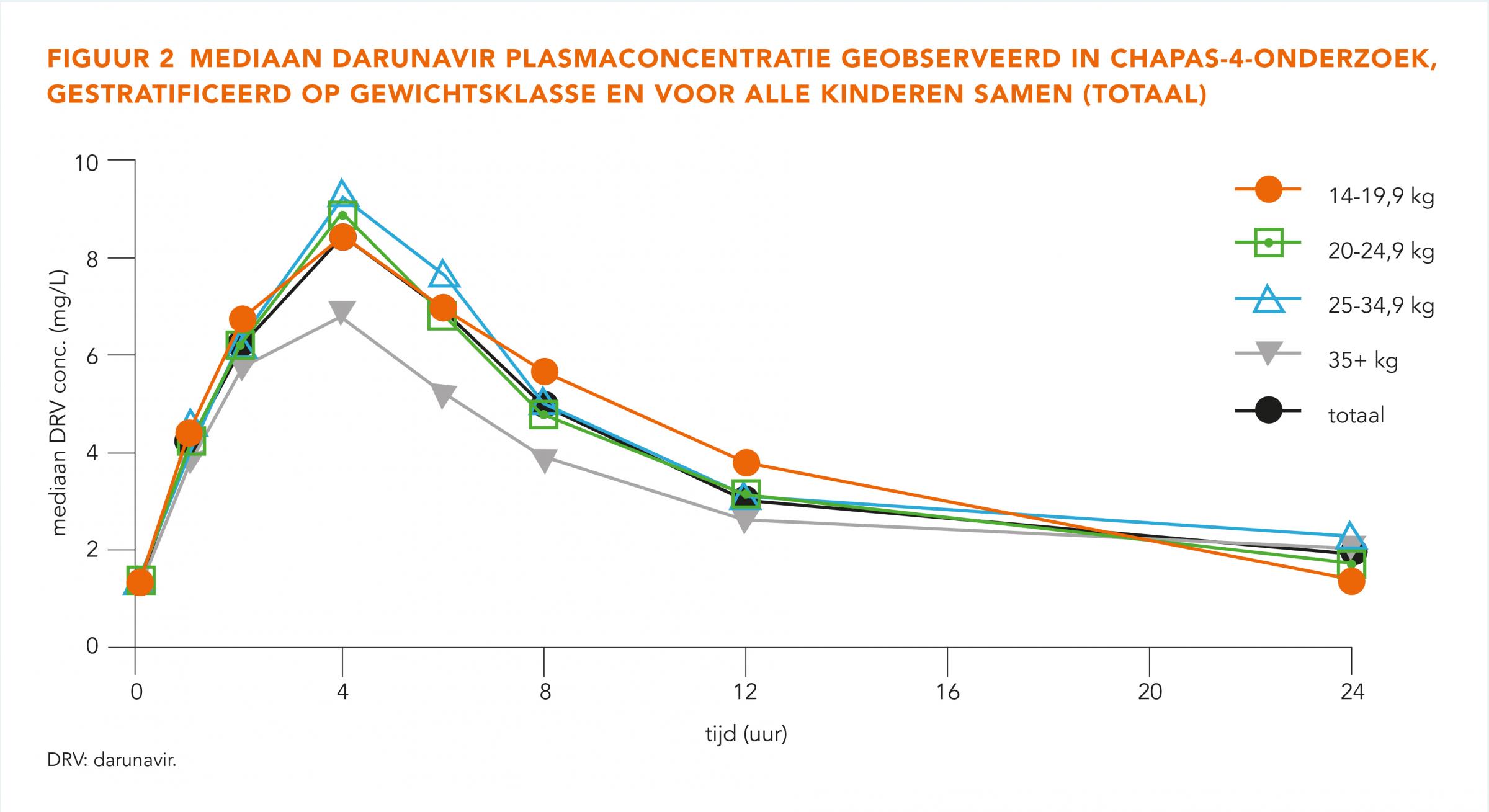 In dit onderzoek kregen de kinderen die 25 kg of meer wogen een hogere (volwassen) dosis van 800/100 mg darunavir/ritonavir, terwijl de WHO deze dosering pas aanbeveelt vanaf 35 kg. Er wordt aanbevolen om na te gaan of de WHO-dosering (eenmaal daags 600/100 mg) in de groep van 24,9-35 kg tot voldoende blootstelling zal leiden. Dit kan verder worden onderzocht door middel van een populatiefarmacokinetisch model of een fysiologisch gebaseerd farmacokinetisch model.