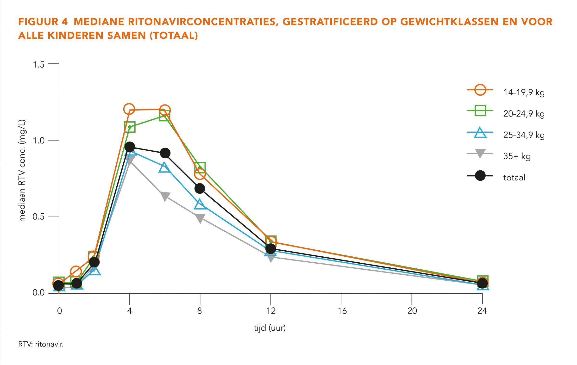 De kinderen werden gedurende 96 weken gevolgd. In week zes werden farmacokinetische bloedmonsters verzameld op vooraf bepaalde tijdstippen: voorafgaand aan de dosis en vervolgens 1, 2, 4, 6, 8, 12 en 24 uur na toediening. Op de dag van de farmacokinetische bloedafname werd ART onder directe observatie toegediend, samen met voedsel (ontbijt met 5% vet, ongeveer 250 kilocalorieën). Eventuele comedicatie werd minimaal twee uur na de onderzoeksmedicatie toegediend.